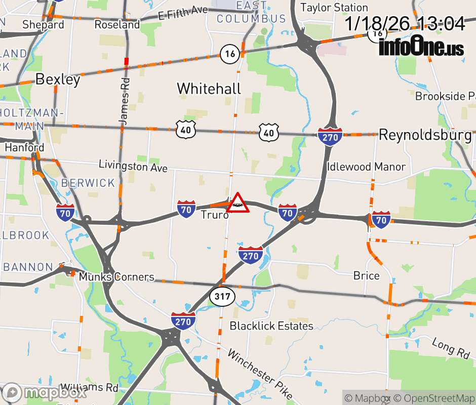 The 2 left lanes are blocked on I-70 West at SR-317/Hamilton Rd, due to a crash. ![]() |