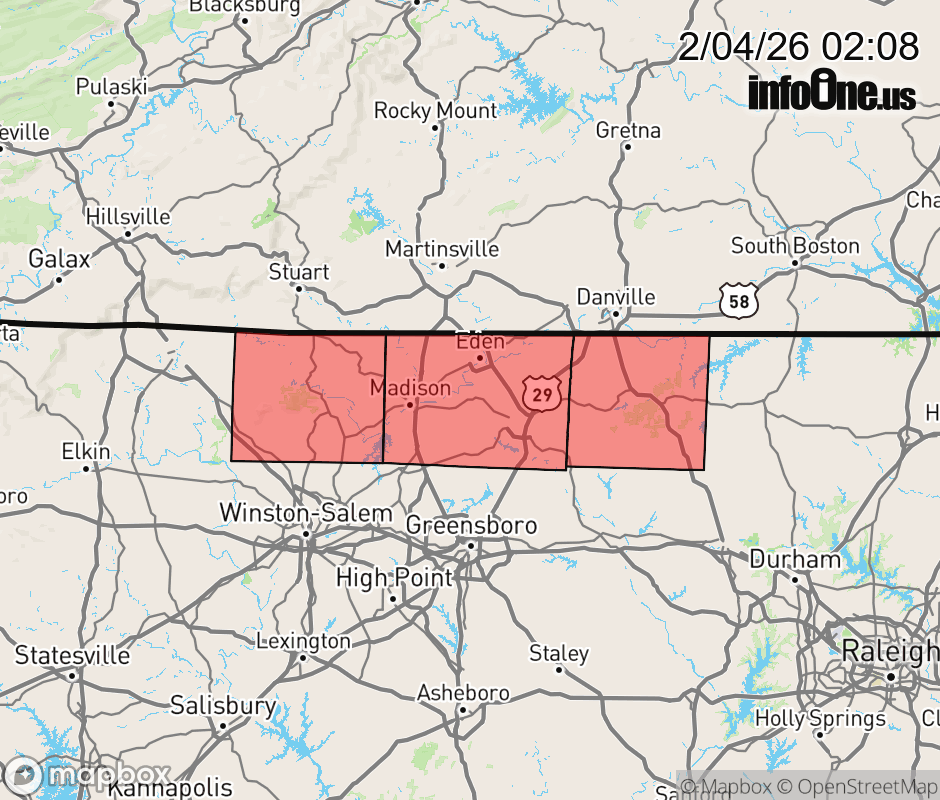 Canceled 2/4/26 10:58 AM Winter Weather Advisory issued February 4 at 2:06AM EST until February 5 at 10:00AM EST by NWS Blacksburg VA * WHAT... Mixed precipitation expected. Total snow accumulations up to one inch and ice accumulations around a light glaze. * WHERE... Caswell, Rockingham, and Stokes Counties. * WHEN... From 6 PM this evening to 10 AM EST Thursday. * IMPACTS... Roads, and especially bridges and overpasses, will likely become slick and hazardous. Plan on slippery road conditions. The hazardous conditions could impact the Thursday morning commute. * ADDITIONAL DETAILS... Rain is expected to change to light snow over the Piedmont this evening. The snow accumulations will be light, mainly less than 1 inch. Elsewhere, a change to a mixture of light freezing rain and drizzle will develop. Temperatures will rapidly fall below freezing overnight creating hazardous travel in the Advisory area. ![]() |