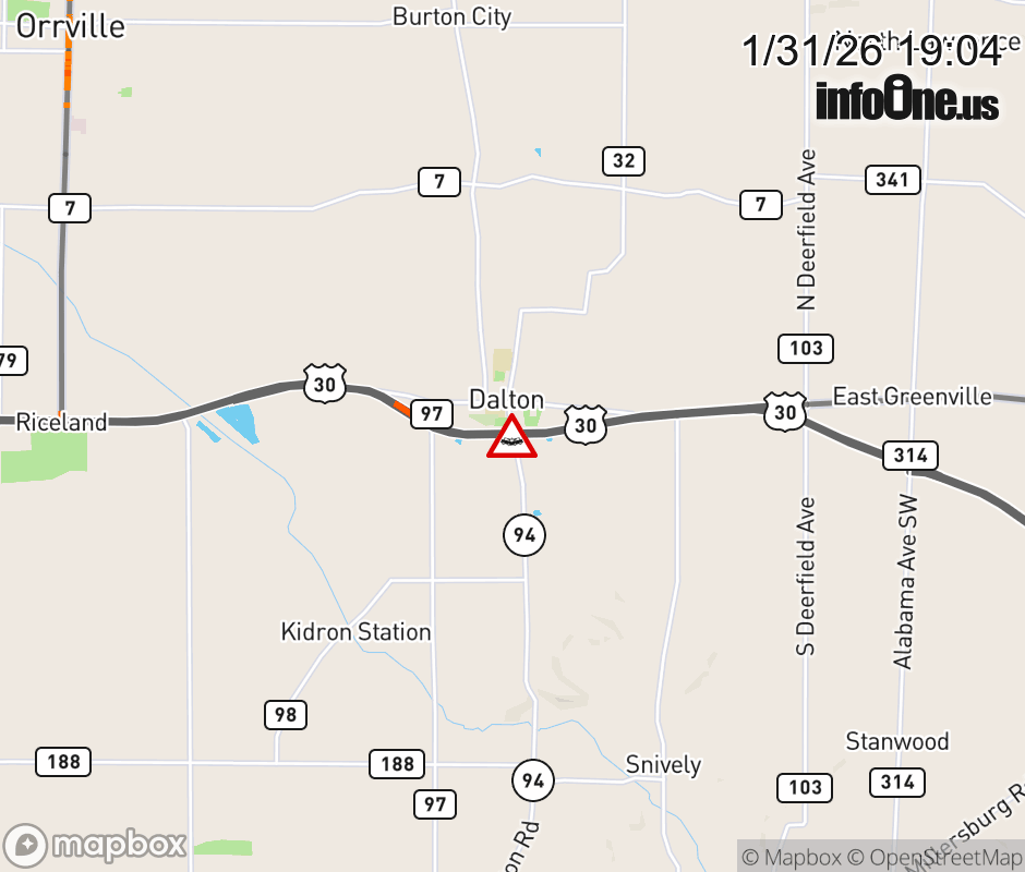 Canceled 1/31/26 8:38 PM Location: US-30 East at MM 175.2, OH Accident.