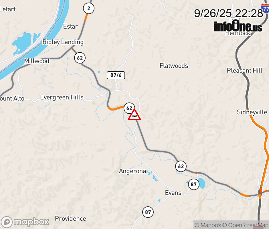 In Jackson County there is a Vehicle Crash on WV-62 at Mile Marker 7.68. WV-62 (RIPLEY ROAD) & FISHER MOBILE HOME PARK. ![]() |