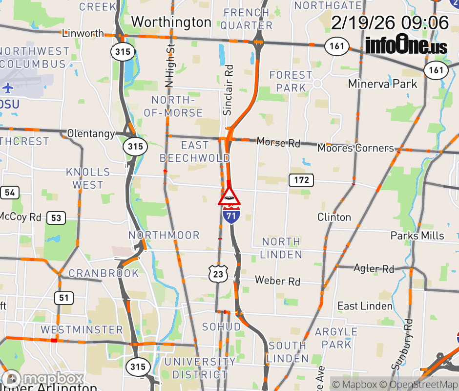 The right shoulder is blocked on I-71 South beyond E Cooke Rd, due to a crash. Updated: Thu 2/19/26 9:06 AM EST ![]() Updated: Thu 2/19/26 9:06 AM EST |
