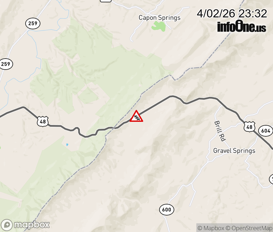 On US-48 in the County of Frederick, in the vicinity of County/City/Town Line, VIRGINIA STATE LINE, motorists can expect delays due to a vehicle fire. All east lanes are closed. Updated: Thu 4/2/26 11:32 PM EDT ![]() Updated: Thu 4/2/26 11:32 PM EDT |