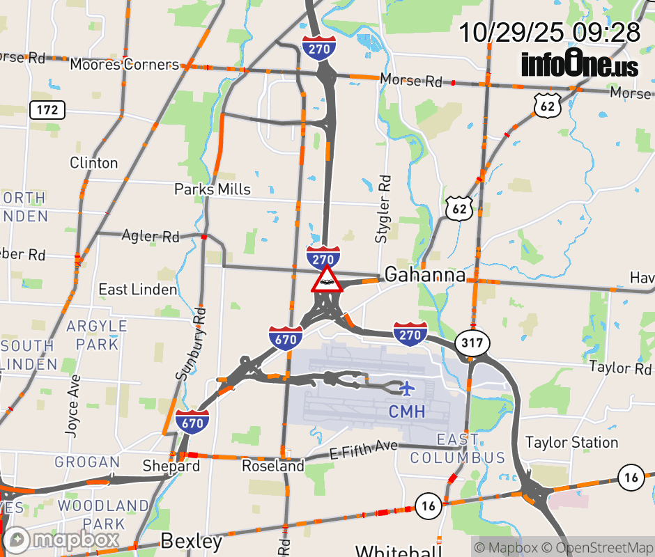All lanes are blocked on Ramp I-670/US-62 East to I-270 North/Easton Way, due to a crash. Updated: Wed 10/29/25 9:28 AM EDT ![]() Updated: Wed 10/29/25 9:28 AM EDT |