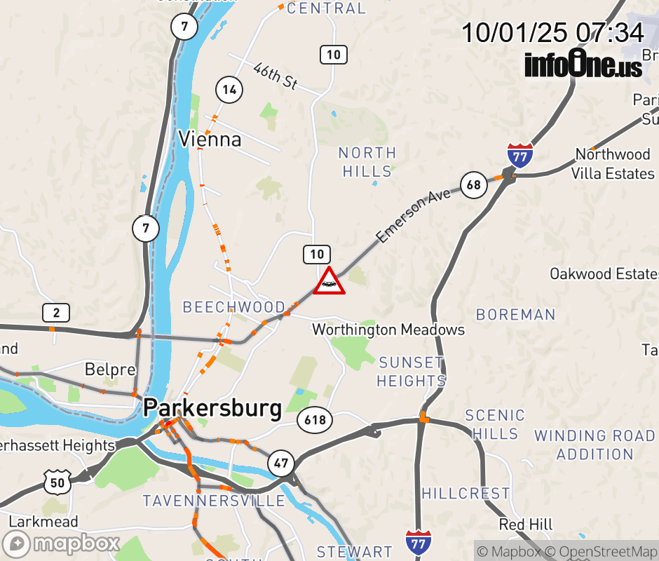 In Wood County there is a Vehicle Crash on WV-68 at Mile Marker 19.96. 4521 Emerson Avenue.