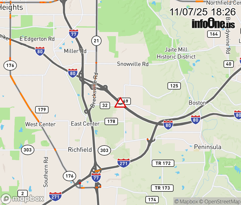 Expect lane closures on I-80 West (Ohio Turnpike) beyond SR-8, due to a crash. ![]() |