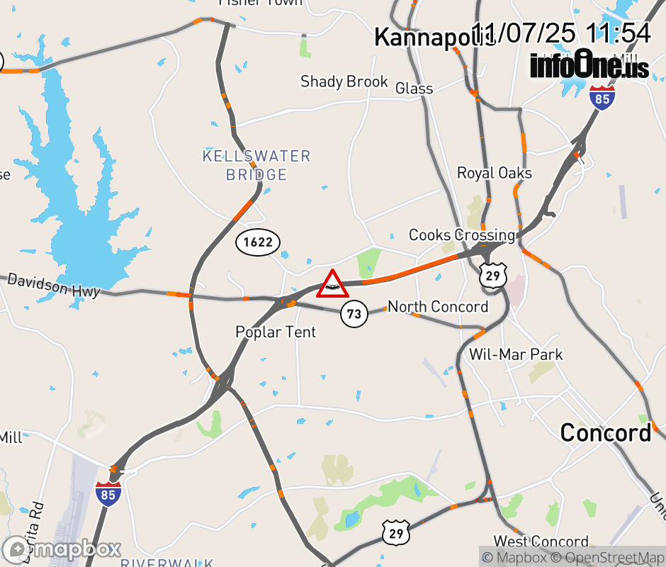 The right lane is closed before Exit 55 (NC 73). ![]() |