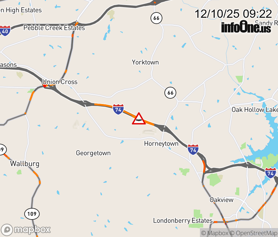 The left lane is closed past Exit 63 (NC-66). ![]() |