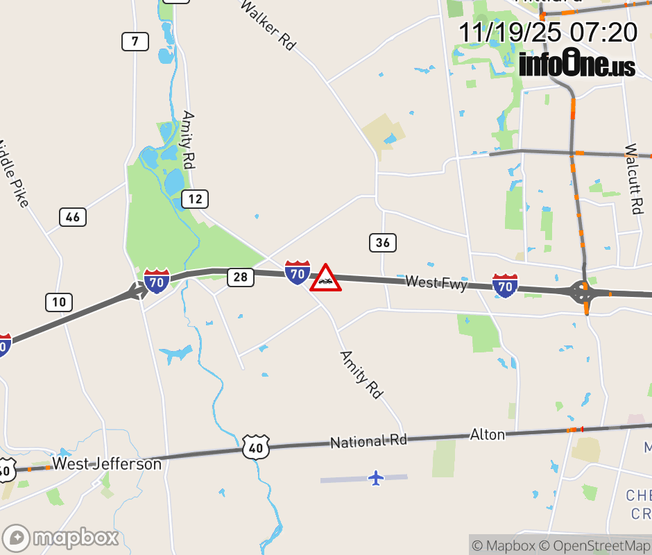 The right shoulder is blocked on I-70 East beyond SR-142/Plain City, due to a disabled vehicle. Updated: Wed 11/19/25 7:20 AM EST ![]() Updated: Wed 11/19/25 7:20 AM EST |