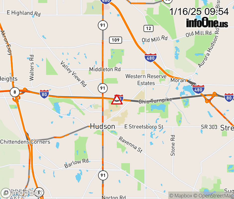 Expect lane closures on I-80 East (Ohio Turnpike) beyond SR-8, due to a crash. Updated: Thu 1/16/25 9:54 AM EST ![]() |