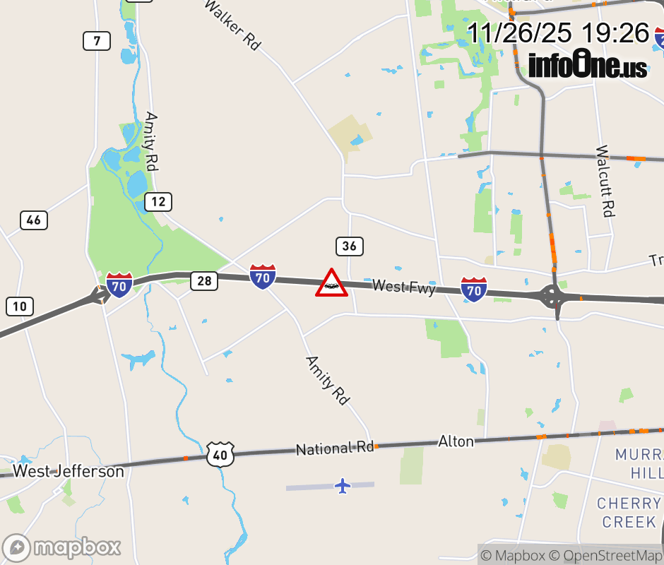 Expect lane closures on I-70 West beyond Hilliard-Rome Rd South, due to a crash. ![]() |