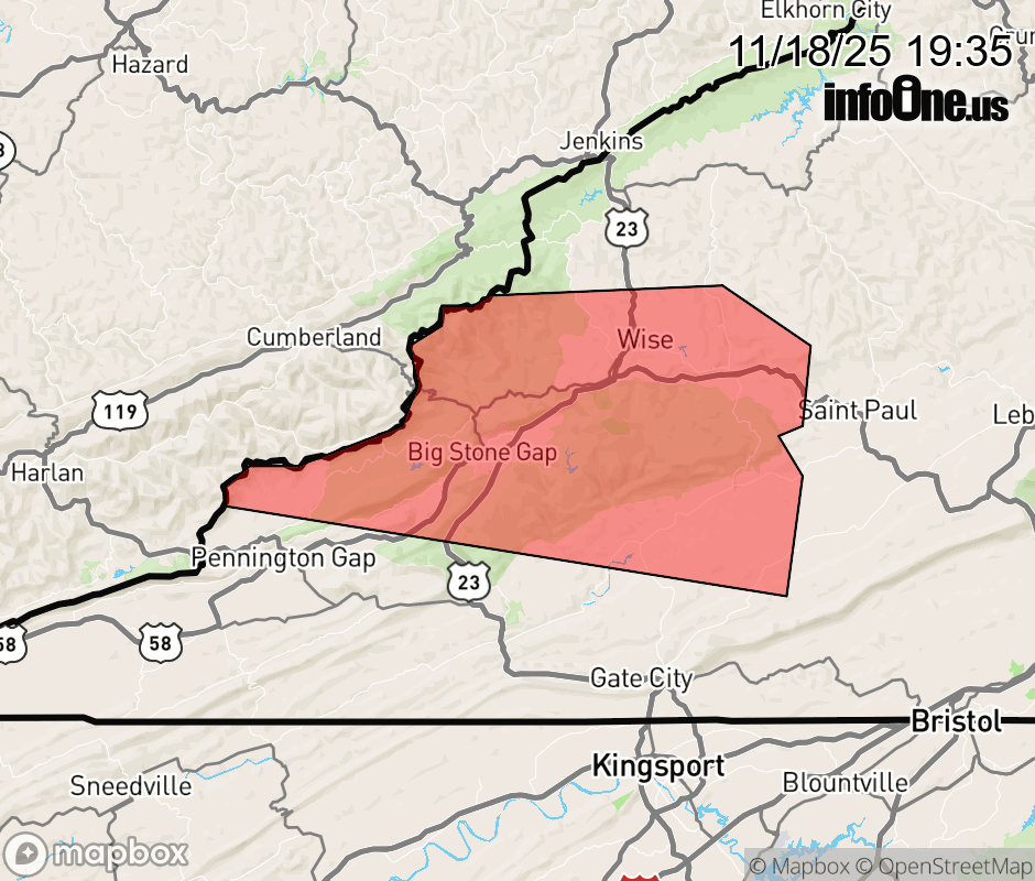 Canceled 11/18/25 8:15 PM Special Weather Statement issued November 18 at 7:34PM EST by NWS Morristown TN At 732 PM EST, Doppler radar was tracking a strong thunderstorm over Shields, or 10 miles northeast of Harlan, moving east at 60 mph. HAZARD...Wind gusts up to 40 mph and pea size hail. SOURCE...Radar indicated. IMPACT...Gusty winds could knock down tree limbs and blow around unsecured objects. Minor hail damage to vegetation is possible. Locations impacted include... Norton, Wise, Big Stone Gap, Coeburn, Appalachia, Nickelsville, Dungannon, St. Charles, Fort Blackmore, and Pardee. ![]() |