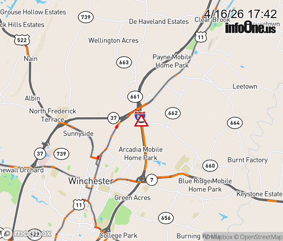 On I-81 at mile marker 317.4 in the County of Frederick, motorists can expect delays due to a vehicle crash. The north right shoulder is closed. ![]() |