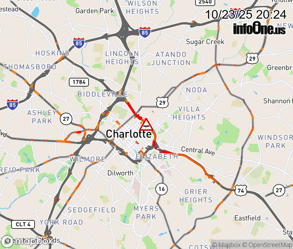 The 2 left lanes are closed prior to Exit 2 (N Brevard Street). Updated: Thu 10/23/25 8:24 PM EDT ![]() Updated: Thu 10/23/25 8:24 PM EDT |