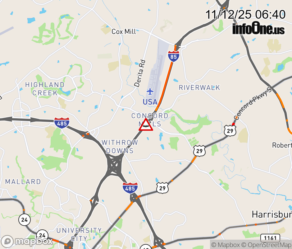 The right lane is closed at Exit 49 (Concord Mills Blvd.). ![]() |