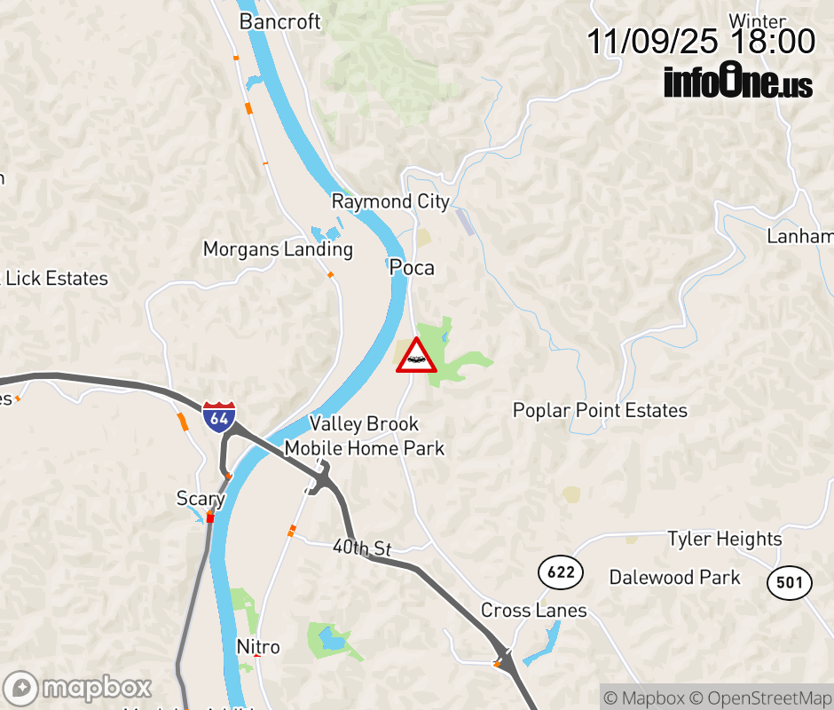 Vehicle Crash on WV-62 (1700 Blk Charleston Rd Poca). The eastbound road is closed. The westbound road is closed. Updated: Sun 11/9/25 6:00 PM EST ![]() Updated: Sun 11/9/25 6:00 PM EST |