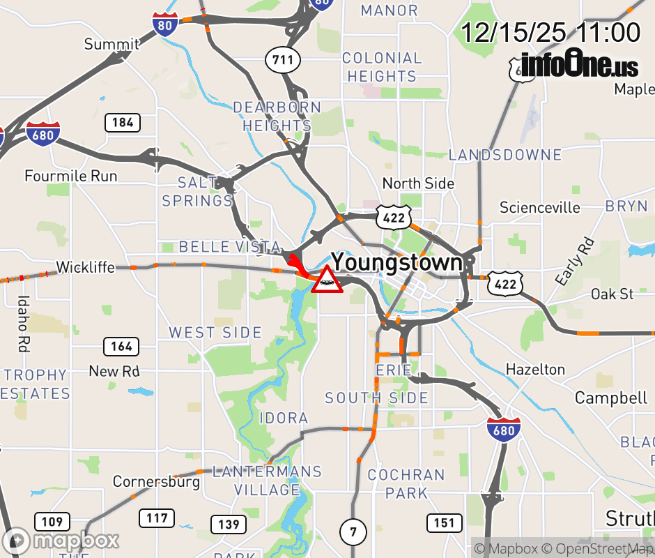Expect lane closures on I-680 South at Glenwood Ave/Mahoning Ave, due to a crash. ![]() |