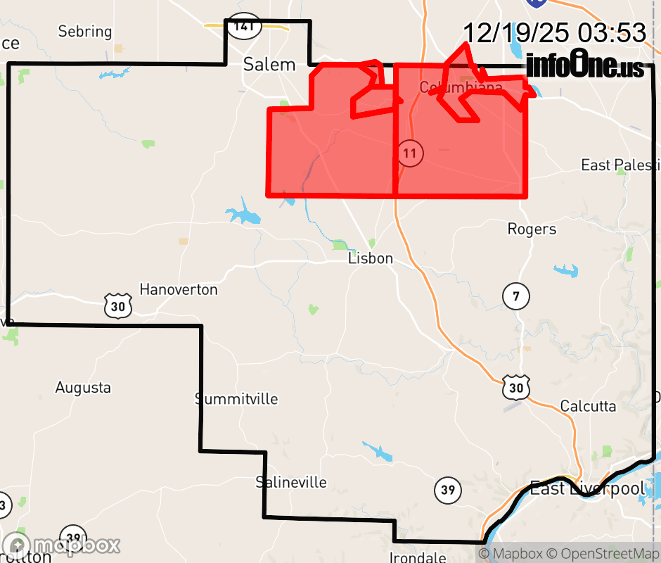 Columbiana County has 1 power outage affecting 4 customers. Ohio Edison 4 without power Lisbon: Customers affected: 19 (1%) Estimated repair: Fri 7:30 AM Center Township: Customers affected: 19 (1%) Estimated repair: Fri 7:30 AM Updated: Fri 12/19/25 4:53 AM EST ![]() Updated: Fri 12/19/25 3:53 AM EST |