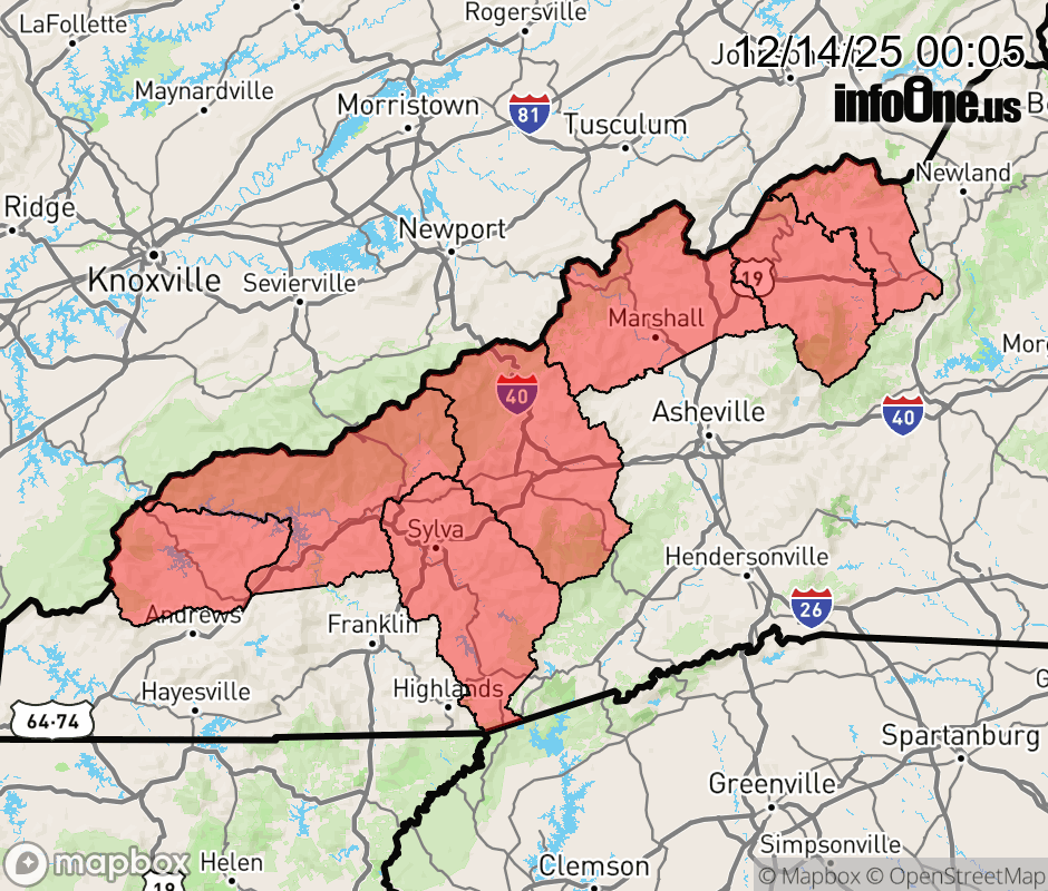 Canceled 12/14/25 12:59 PM Cold Weather Advisory issued December 14 at 12:04AM EST until December 15 at 9:00AM EST by NWS Greenville-Spartanburg SC * WHAT... Very cold wind chills of 5 below zero to 10 below zero expected, with values of 15 below zero to 20 below zero possible on the highest peaks. * WHERE... Graham, Haywood, Madison, Mitchell, Northern Jackson, Swain, and Yancey Counties. * WHEN... From 5 PM this afternoon to 9 AM EST Monday. * IMPACTS... The dangerously cold wind chills as low as 20 below zero could result in hypothermia or frostbite if precautions are not taken. ![]() |