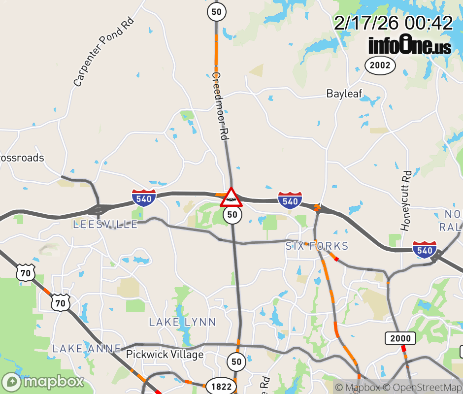 The left lane is closed near Exit 9 (NC-50). ![]() |