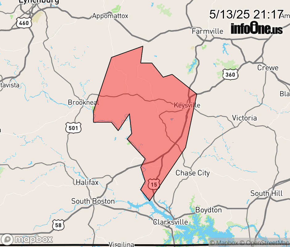 Canceled 5/13/25 10:18 PM Flood Advisory issued May 13 at 9:16PM EDT until May 13 at 11:00PM EDT by NWS Blacksburg VA * WHAT... Flooding caused by excessive rainfall is expected. * WHERE... A portion of south central Virginia, including the following county, Charlotte. * WHEN... Until 1100 PM EDT. * IMPACTS... Minor flooding in low-lying and poor drainage areas. * ADDITIONAL DETAILS... - At 913 PM EDT, Doppler radar indicated heavy rain due to thunderstorms near Charlotte Court House. Minor flooding is ongoing or expected to begin shortly in the advisory area. Between 1 and 2 inches of rain have fallen. - Additional rainfall amounts of 0.5 to 1 inch are expected over the area. This additional rain will result in minor flooding. - Some locations that will experience flooding include... Charlotte Court House... Red House... Drakes Branch... Saxe... - http://www.weather.gov/safety/flood ![]() |