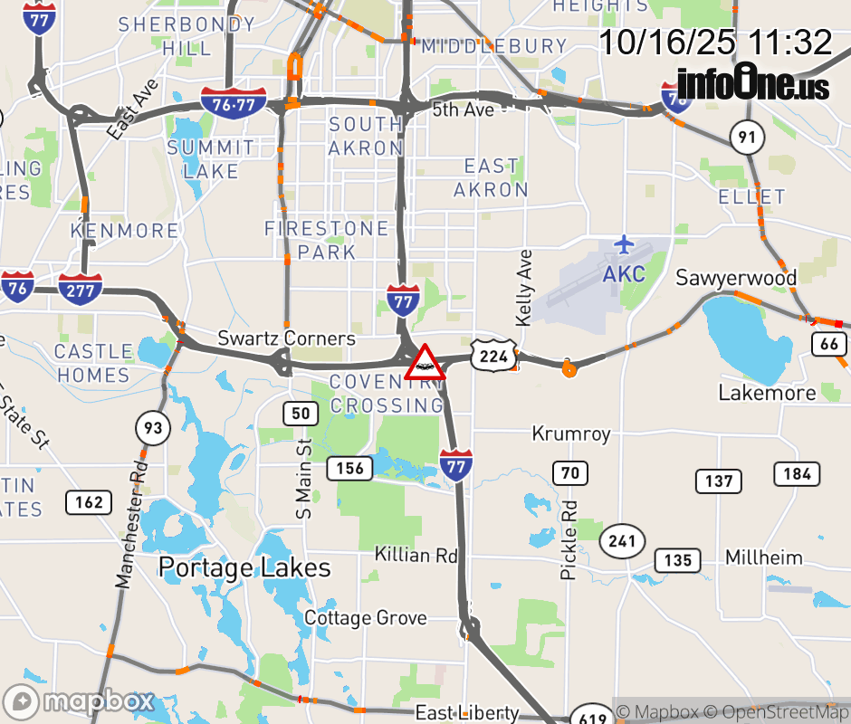 Expect lane closures on I-77 North at I-277/US-224 West, due to a crash. ![]() |
