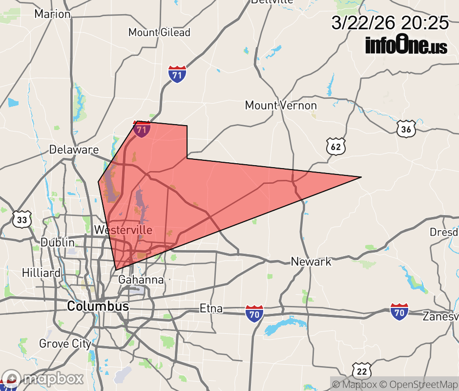 Canceled 3/22/26 8:38 PM Severe Thunderstorm Warning issued March 22 at 8:24PM EDT until March 22 at 8:45PM EDT by NWS Wilmington OH At 824 PM EDT, a severe thunderstorm was located near Centerburg, moving east at 55 mph. HAZARD...Half dollar size hail. SOURCE...Emergency management. IMPACT...Minor damage to vehicles is possible. Locations impacted include... Columbus, Westerville, Johnstown, Sunbury, Utica, Minerva Park, New Albany, Galena, Hartford, Interstate 71 at US Route 36/State Route 37, Alum Creek State Park, Olive Green, US Route 62 at State Route 661, Huber Ridge, and Center Village. This includes I-71 in Ohio between mile markers 121 and 138. ![]() |