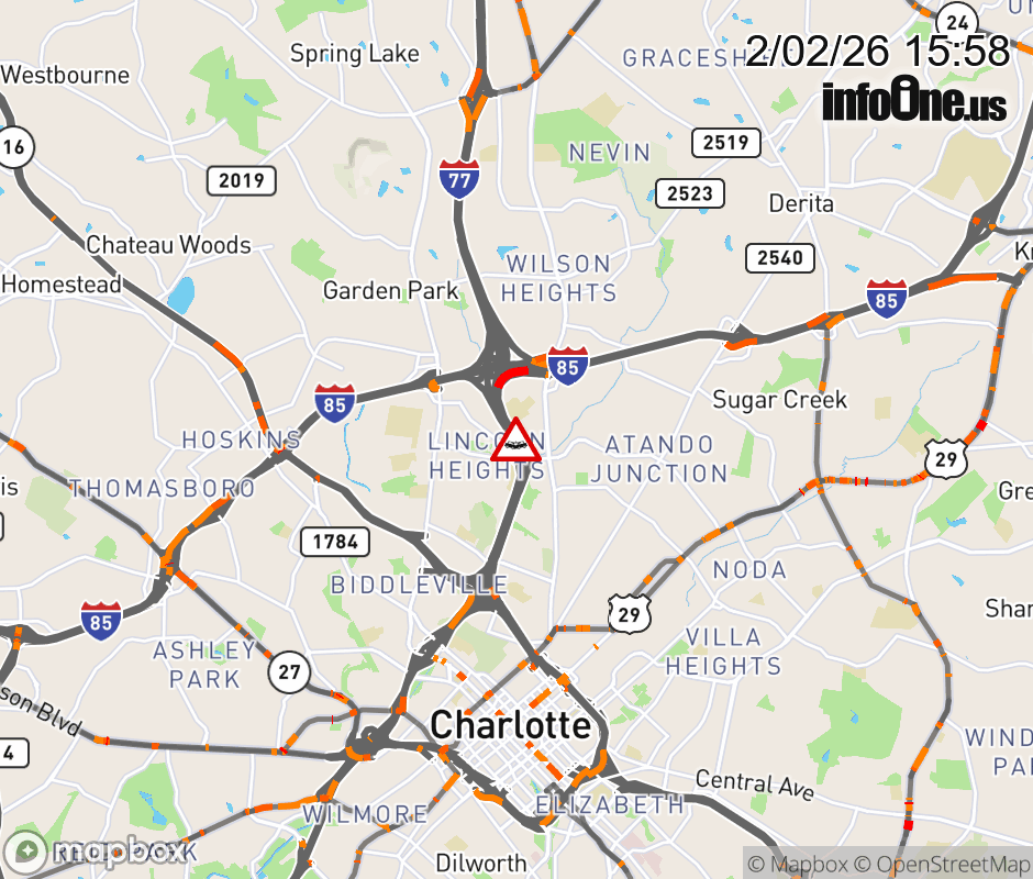 Crash on I-77 North Bound between exit 12, La Salle St, and exit 13, I-85 Interchange. The express lanes are blocked. ![]() |