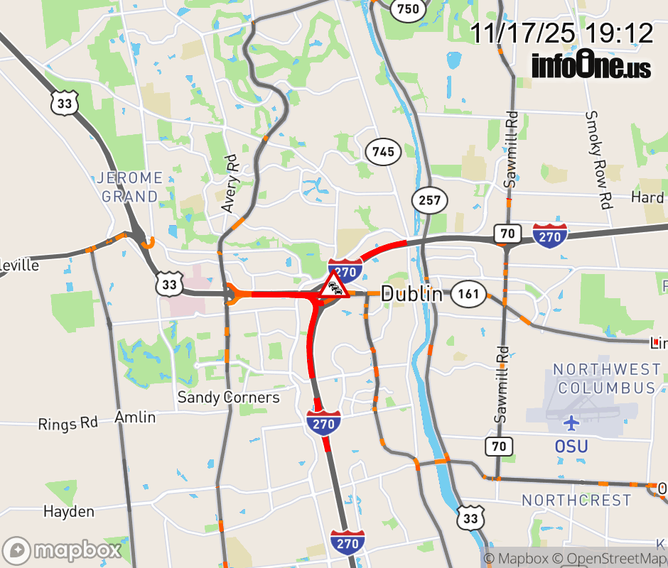 All lanes are closed on I-270 West beyond US-33/SR-161 West, due to an other incident. Updated: Mon 11/17/25 7:12 PM EST ![]() Updated: Mon 11/17/25 7:12 PM EST |