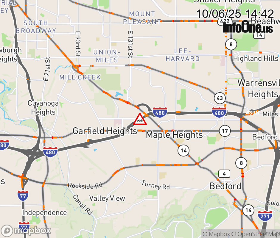 The right lane is blocked on I-480 West beyond SR-14/Broadway Ave, due to a disabled vehicle. ![]() |