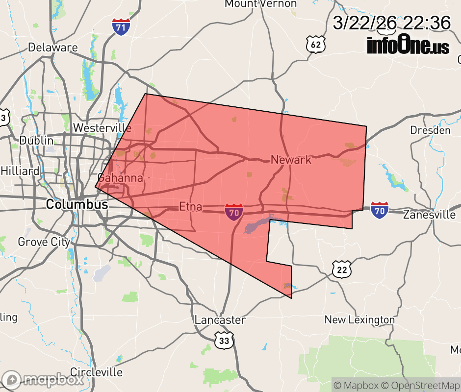 Canceled 3/22/26 10:54 PM Severe Thunderstorm Warning issued March 22 at 10:34PM EDT until March 22 at 11:15PM EDT by NWS Wilmington OH At 1034 PM EDT, a severe thunderstorm was located near Pataskala, moving east at 50 mph. HAZARD...60 mph wind gusts and quarter size hail. SOURCE...Radar indicated. IMPACT...Minor hail damage to vehicles is possible. Expect wind damage to trees and power lines. Locations impacted include... Columbus, Newark, Reynoldsburg, Gahanna, Pickerington, Heath, Granville, Pataskala, Johnstown, Baltimore, Buckeye Lake, Hebron, Millersport, Pleasantville, Hanover, Harbor Hills, Granville South, Marne, Fairfield Beach, and Beechwood Trails. This includes I-70 in Ohio between mile markers 112 and 142, and near mile marker 144. ![]() |