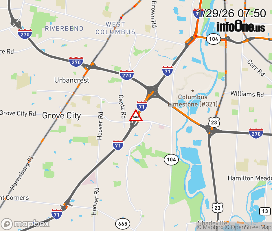 Expect lane closures on Ramp from I-71 S to Stringtown Rd, due to a crash. ![]() |