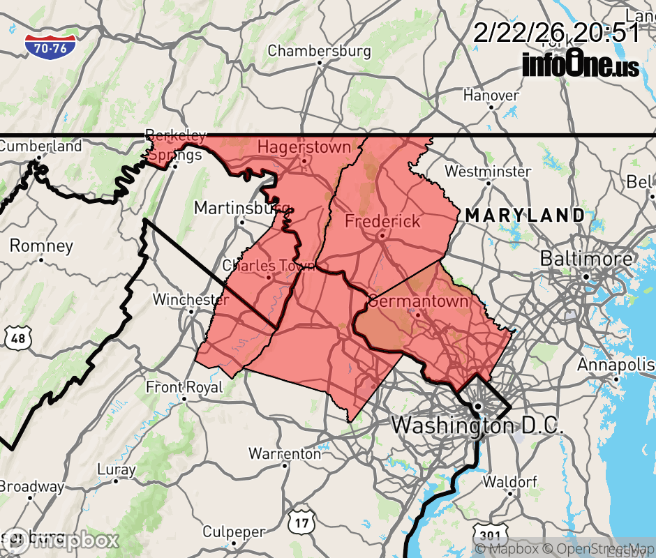 Canceled 2/22/26 11:30 PM Winter Storm Warning issued February 22 at 8:50PM EST until February 23 at 10:00AM EST by NWS Baltimore MD/Washington DC * WHAT... Heavy snow. Additional snow accumulations between 1 and 3 inches. Winds gusting as high as 40 mph. * WHERE... Portions of central and north central Maryland, northern and northwest Virginia, and panhandle West Virginia. * WHEN... Until 10 AM EST Monday. * IMPACTS... Plan on slippery road conditions. The hazardous conditions could impact the Monday morning commute. ![]() |