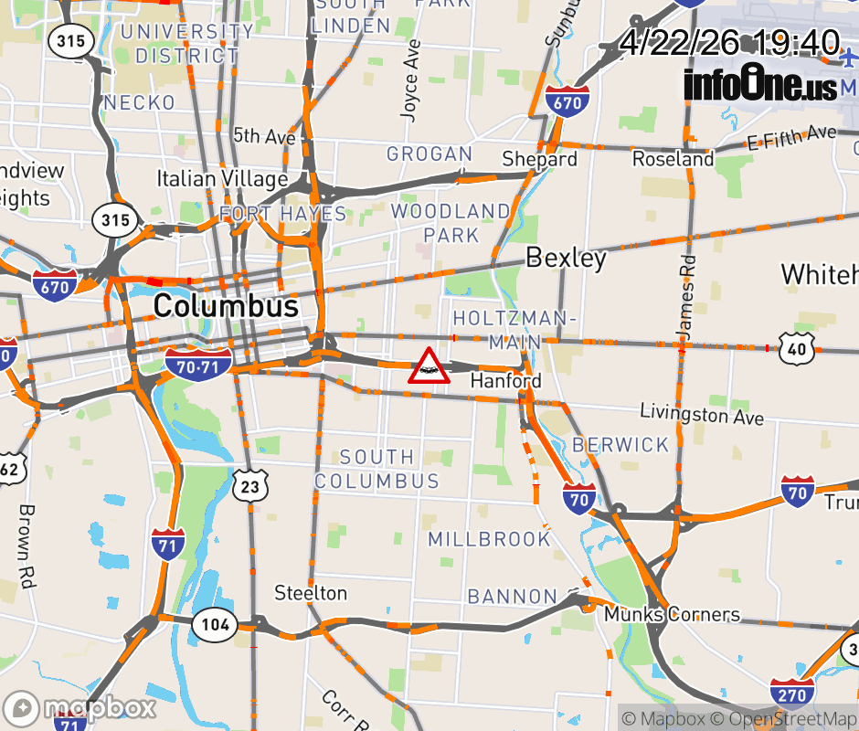The left shoulder is blocked on I-70 West beyond Kelton Ave/Miller Ave, due to a crash. Updated: Wed 4/22/26 7:40 PM EDT ![]() Updated: Wed 4/22/26 7:40 PM EDT |
