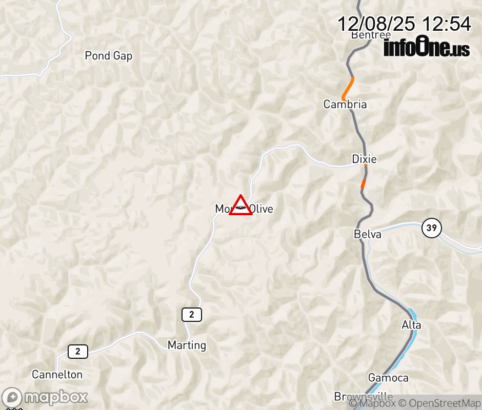 Vehicle Crash on CR-2 (Cannelton Hollow Rd) & Auxier Ridge Rd in Mt Olive. ![]() |