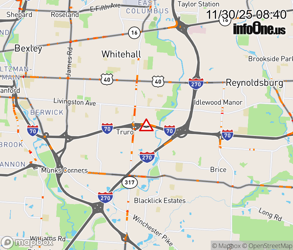 The right shoulder is blocked on I-70 East beyond SR-317 North/Hamilton Rd, due to a crash. Updated: Sun 11/30/25 8:40 AM EST ![]() Updated: Sun 11/30/25 8:40 AM EST |