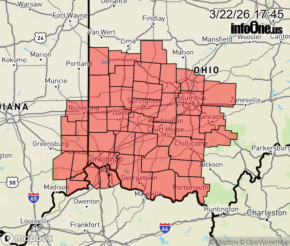 Canceled 3/22/26 11:03 PM Severe Thunderstorm Watch issued March 22 at 5:43PM EDT until March 23 at 12:00AM EDT by NWS Wilmington OH THE NATIONAL WEATHER SERVICE HAS ISSUED SEVERE THUNDERSTORM WATCH 73 IN EFFECT UNTIL MIDNIGHT EDT TONIGHT FOR THE FOLLOWING AREAS IN INDIANA THIS WATCH INCLUDES 8 COUNTIES IN EAST CENTRAL INDIANA FAYETTE UNION WAYNE IN SOUTHEAST INDIANA DEARBORN FRANKLIN OHIO RIPLEY SWITZERLAND IN KENTUCKY THIS WATCH INCLUDES 3 COUNTIES IN NORTHERN KENTUCKY BOONE CAMPBELL KENTON IN OHIO THIS WATCH INCLUDES 32 COUNTIES IN CENTRAL OHIO DELAWARE FAIRFIELD FAYETTE FRANKLIN HOCKING LICKING MADISON PICKAWAY UNION IN SOUTH CENTRAL OHIO ADAMS HIGHLAND PIKE ROSS SCIOTO IN SOUTHWEST OHIO BROWN BUTLER CLERMONT CLINTON HAMILTON WARREN IN WEST CENTRAL OHIO AUGLAIZE CHAMPAIGN CLARK DARKE GREENE HARDIN LOGAN MERCER MIAMI MONTGOMERY PREBLE SHELBY THIS INCLUDES THE CITIES OF ABERDEEN, ADA, ALEXANDRIA, AURORA, BATESVILLE, BEAVERCREEK, BELLEFONTAINE, BELLEVUE, BLANCHESTER, BRIGHT, BROOKVILLE, BURLINGTON, CAMDEN, CELINA, CHILLICOTHE, CIRCLEVILLE, COLDWATER, CONNERSVILLE, COVINGTON, DAY HEIGHTS, DAYTON, DELAWARE, DILLSBORO, DOWNTOWN CINCINNATI, DOWNTOWN COLUMBUS, DOWNTOWN DAYTON, EATON, ERLANGER, FAIRBORN, FAIRFIELD, FLORENCE, FORT THOMAS, FRANKLIN, GEORGETOWN, GREENDALE, GREENFIELD, GREENVILLE, HAMILTON, HIDDEN VALLEY, HIGHLAND HEIGHTS, HILLSBORO, INDEPENDENCE, KENTON, KETTERING, LANCASTER, LANDEN, LAWRENCEBURG, LEBANON, LIBERTY, LOGAN, LONDON, MANCHESTER, MARYSVILLE, MASON, MIDDLETOWN, MILAN, MILFORD, MINSTER, MOUNT CARMEL, MOUNT ORAB, MOUNT REPOSE, MULBERRY, NEW BREMEN, NEWARK, NEWPORT, OAKBROOK, OSGOOD, OXFORD, PEEBLES, PICKERINGTON, PIKE LAKE, PIKETON, PIQUA, PLAIN CITY, PORTSMOUTH, RICHMOND, RIPLEY, RISING SUN, SEAMAN, SIDNEY, SPRINGBORO, SPRINGFIELD, ST. MARYS, SUMMERSIDE, TIPP CITY, TROY, URBANA, VERSAILLES, VEVAY, WAPAKONETA, WASHINGTON COURT HOUSE, WAVERLY, WEST COLLEGE CORNER, WEST JEFFERSON, WEST UNION, WHEELERSBURG, WILMINGTON, WINCHESTER, WITHAMSVILLE, AND XENIA. ![]() |