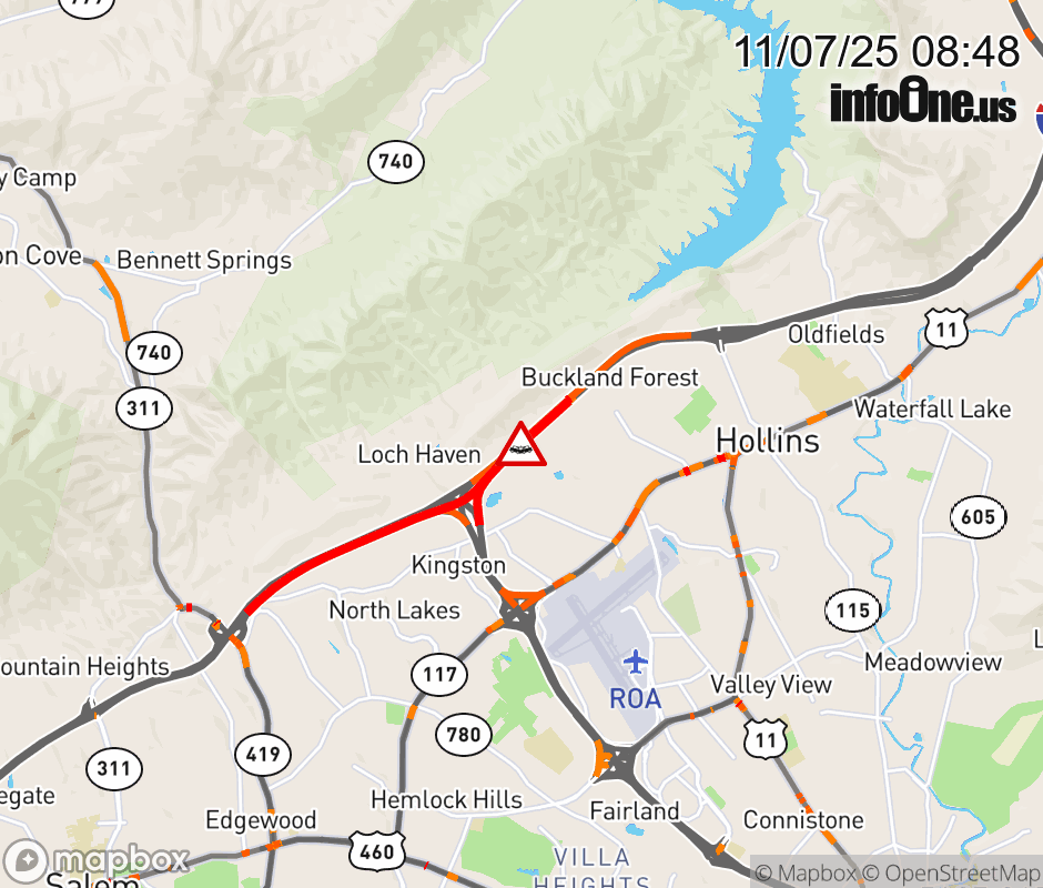 On I-81 at mile marker 144.5 in the County of Roanoke, motorists can expect delays due to a vehicle crash. The south left shoulder is closed. Traffic backups are approximately 1.5 miles. Updated: Fri 11/7/25 8:48 AM EST ![]() Updated: Fri 11/7/25 8:48 AM EST |