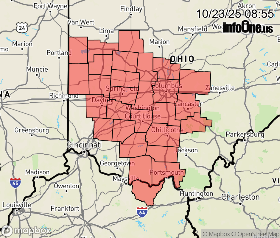 Canceled 10/23/25 12:07 PM Freeze Warning issued October 23 at 8:54AM EDT until October 24 at 9:00AM EDT by NWS Wilmington OH * WHAT... Sub-freezing temperatures as low as 31 expected. * WHERE... Portions of northeast Kentucky and central, south central, southwest, and west central Ohio. * WHEN... From 1 AM to 9 AM EDT Friday. * IMPACTS... Frost and freeze conditions could kill crops, other sensitive vegetation and possibly damage unprotected outdoor plumbing. ![]() |