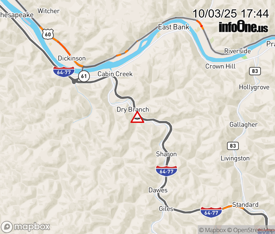 In Kanawha County there is a Vehicle Crash on CR 79/3 2207 Cabin Creek Rd. ![]() |