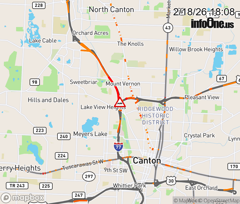 Ramp US-62 West to I-77 South/US-62 West CLOSED because of a disabled vehicle. ![]() |