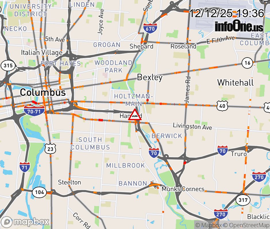 The left shoulder is blocked on I-70 East at Main St, due to a disabled vehicle. ![]() |