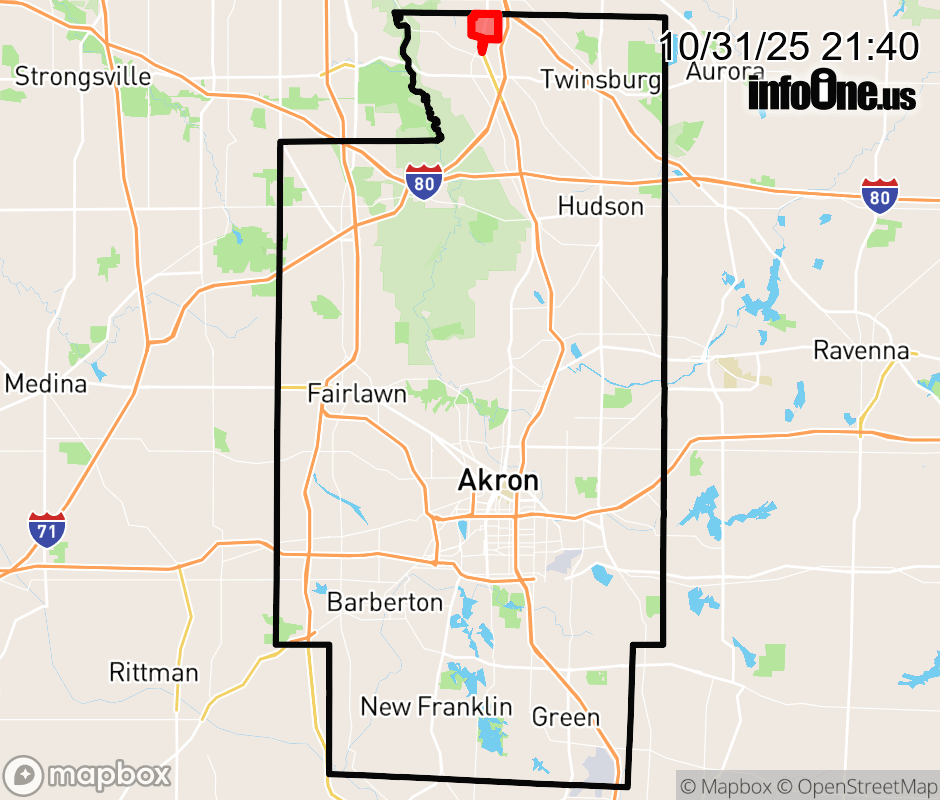 Canceled 11/1/25 12:50 AM Summit County has 1 power outage affecting 1 customer. Ohio Edison 1 without power Mogadore: Customers affected: 19 (1%) Estimated repair: Sat 2:30 AM Updated: Sat 11/1/25 12:20 AM EDT ![]() Updated: Fri 10/31/25 9:40 PM EDT |