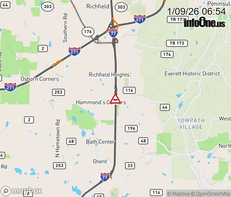 The left lane is blocked on I-77 South beyond Summit County Rest Area 4-32, due to a crash. ![]() |