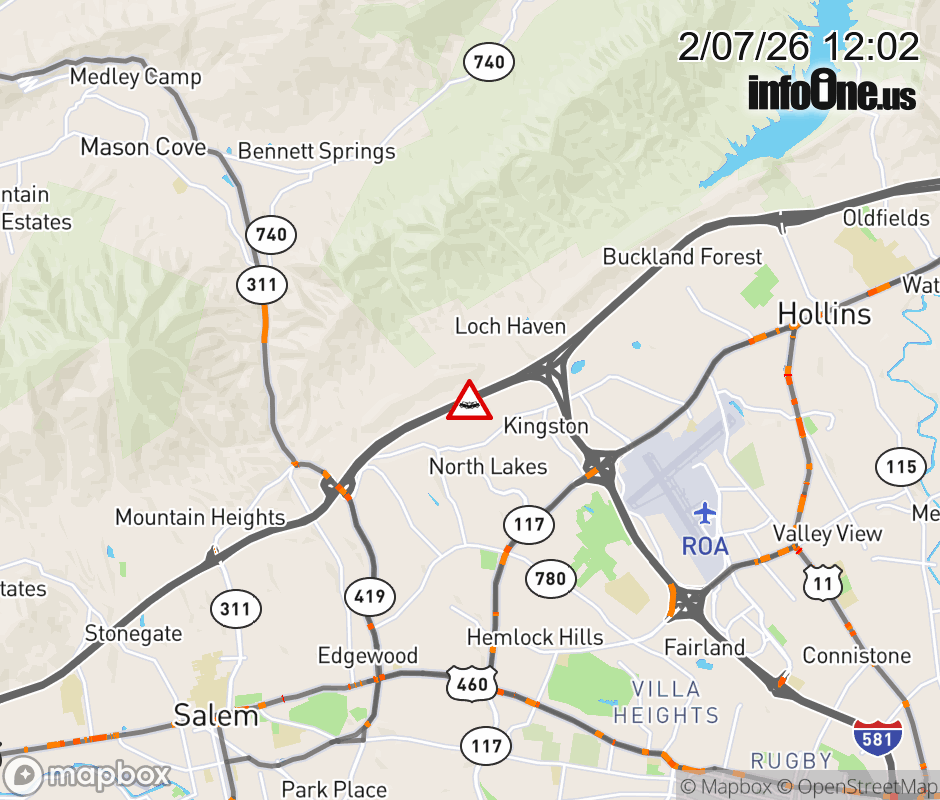 On I-81 at mile marker 143 in the County of Roanoke, motorists can expect delays due to a vehicle crash. The north exit ramp narrows. ![]() |