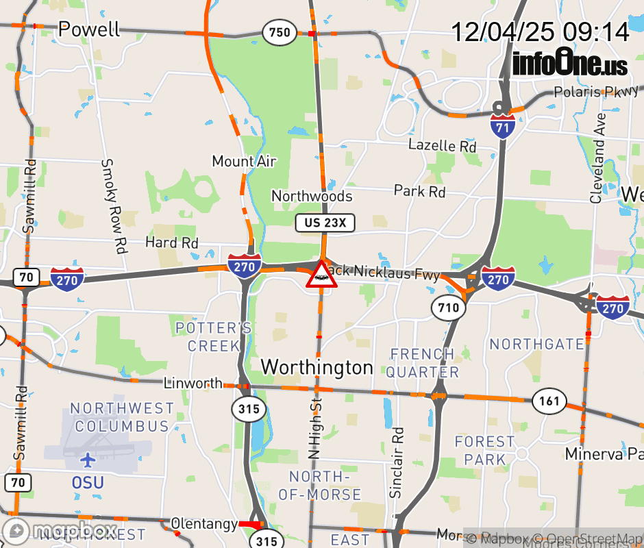 The 2 right lanes are blocked on US-23 North at I-270 East, due to a crash. ![]() |