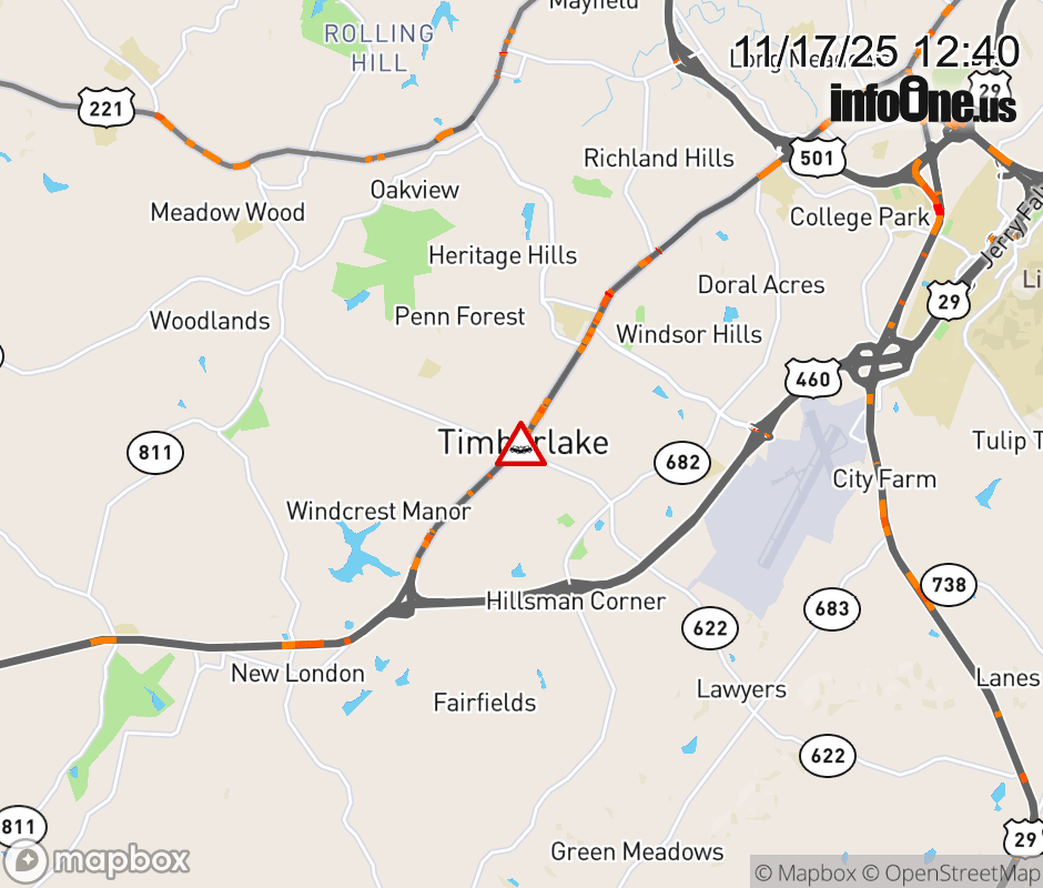On BUS US-460 in the County of Campbell, in the vicinity of Waterlick Rd; Rt. 622E/W (Campbell County), motorists can expect delays due to a vehicle crash. The east right lane and right shoulder are closed. Updated: Mon 11/17/25 12:40 PM EST ![]() Updated: Mon 11/17/25 12:40 PM EST |