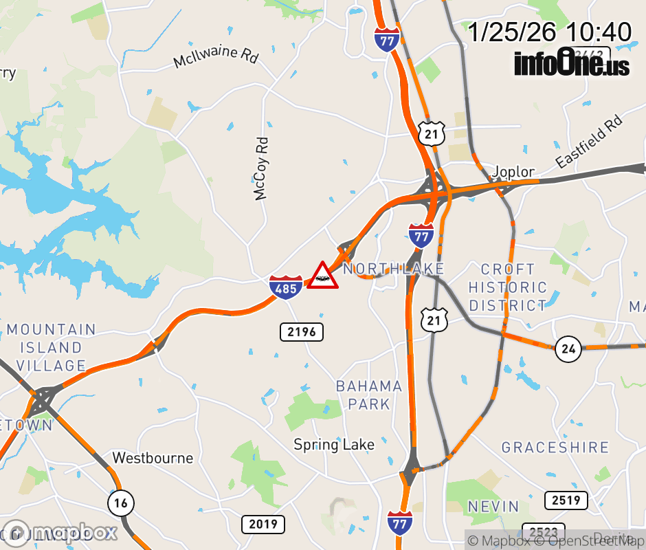 The left shoulder is closed past exit 21 (NC 24). Updated: Sun 1/25/26 10:40 AM EST ![]() Updated: Sun 1/25/26 10:40 AM EST |