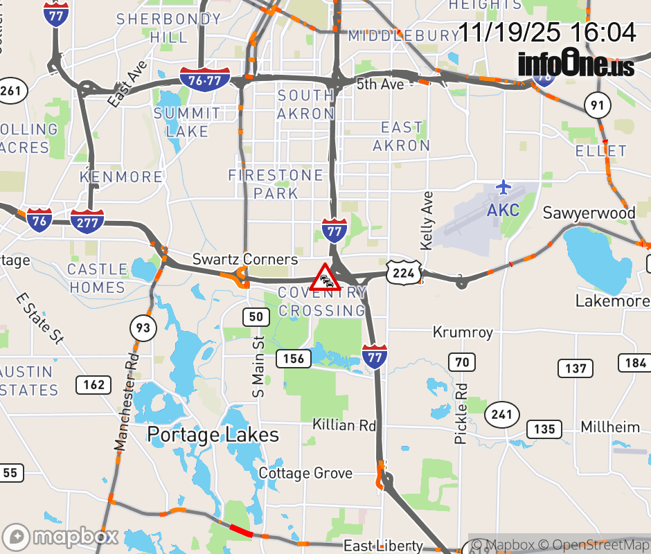 Expect lane closures on Ramp I-77 South to I-277/US-224 West at I-277, due to a fire. ![]() |