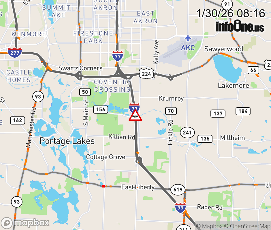 The left lane is blocked on I-77 North beyond Arlington Rd, due to a crash. Updated: Fri 1/30/26 8:16 AM EST ![]() Updated: Fri 1/30/26 8:16 AM EST |