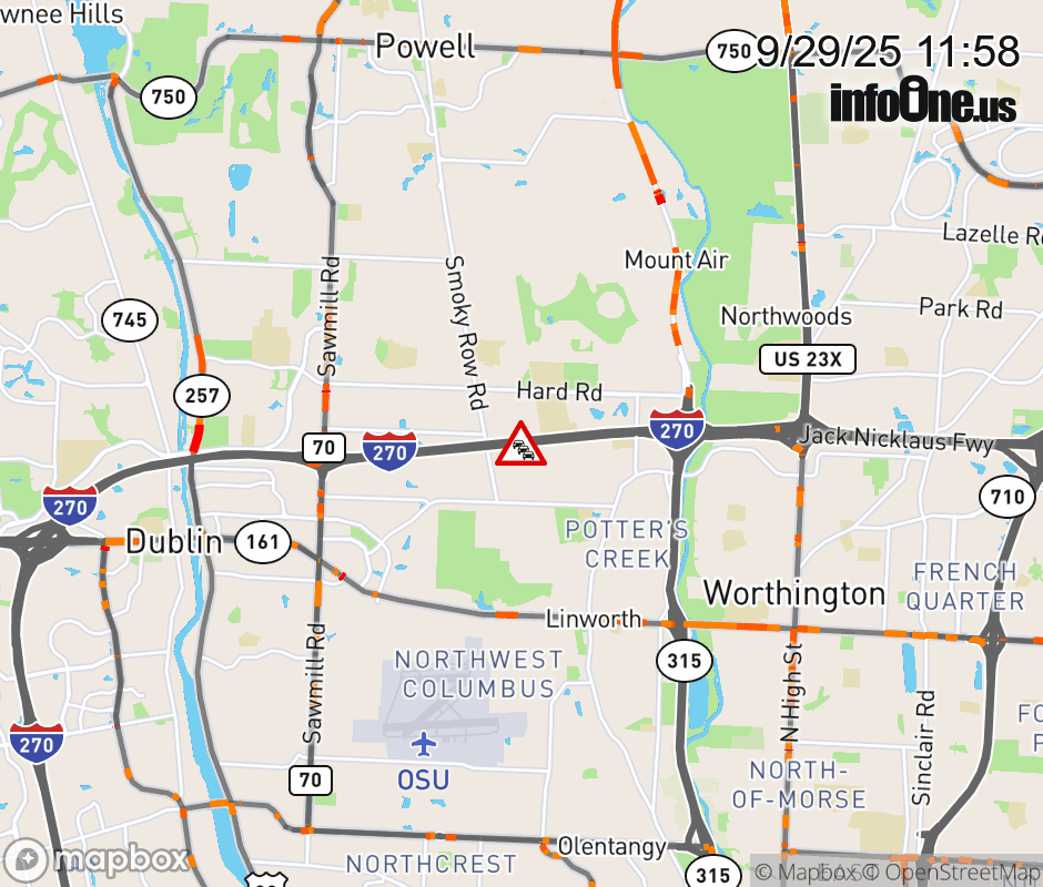 Expect lane closures on I-270 East beyond Sawmill Rd, due to debris on roadway. ![]() |